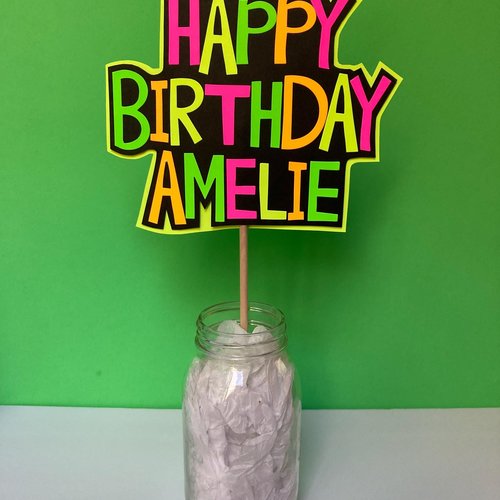 Neon Pink Birthday Cake Topper, Glow Party Cake Topper, Personalized Cake Topper, UV Reflective Cake Decoration, Fluorescent Neon Cake Decor