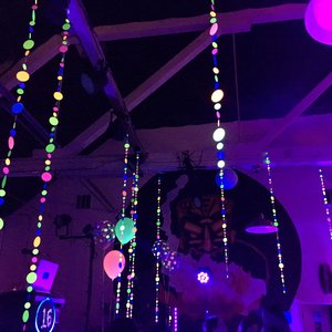 • Garlands are made with neon pink, neon, green, neon yellow, neon orange, and white (which glows blue).
