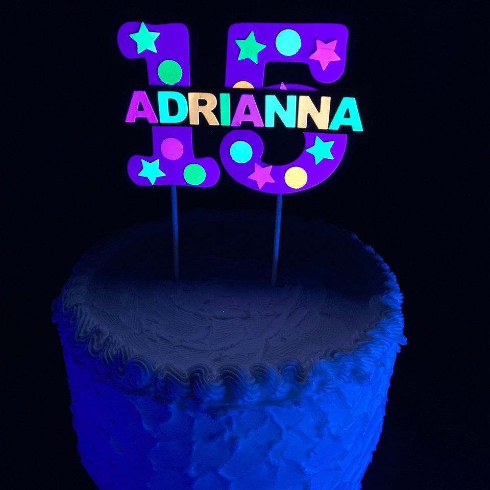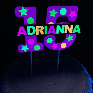 Neon Purple Glow Party Cake Topper, Blacklight Party Decor, Glow in the Dark Birthday, Quinceanera Cake, Personalized Topper, 15th Birthday